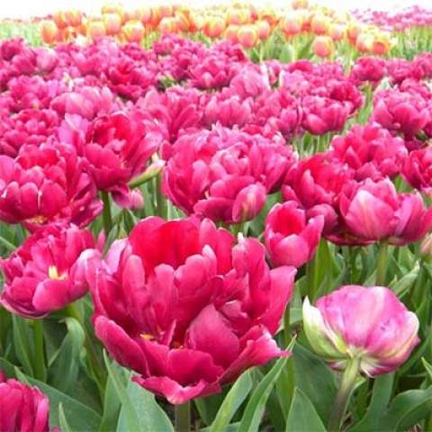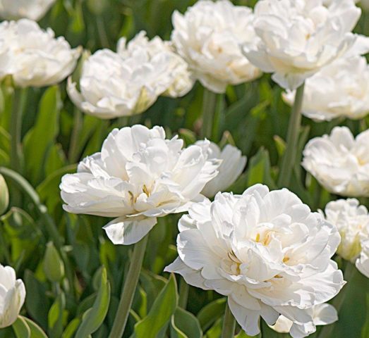 Terry Pfingstrosen-Tulpen in hellen Farbtönen eignen sich besonders gut als Monokultur.
