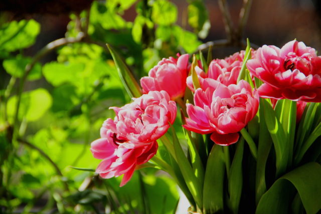 Pfirsichblüten-Tulpen werden aufgrund ihrer charakteristischen weiß-rosa Farbe und Buschform oft mit Pfingstrosen verwechselt.