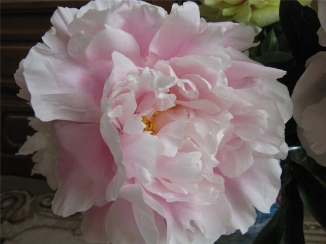 Florence Nicholls oder Florence Nicholls wird bis zu 80 cm groß und hat eine kompakte Buschform. Ein Foto einer blassrosa Pfingstrose zeigt, dass ihre Knospen fast weiß, doppelt und ziemlich groß sind. Die Sorte erreicht Ende Juni ihre maximale dekorative Wirkung, strahlt ein angenehmes Aroma aus und bleibt nach dem Schneiden noch lange in einer Vase.