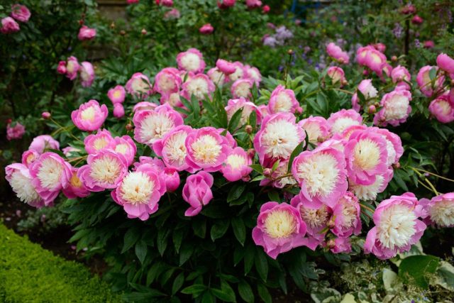 Dickichte von Pfingstrosen konzentrieren sich auf Bereiche des Gartens