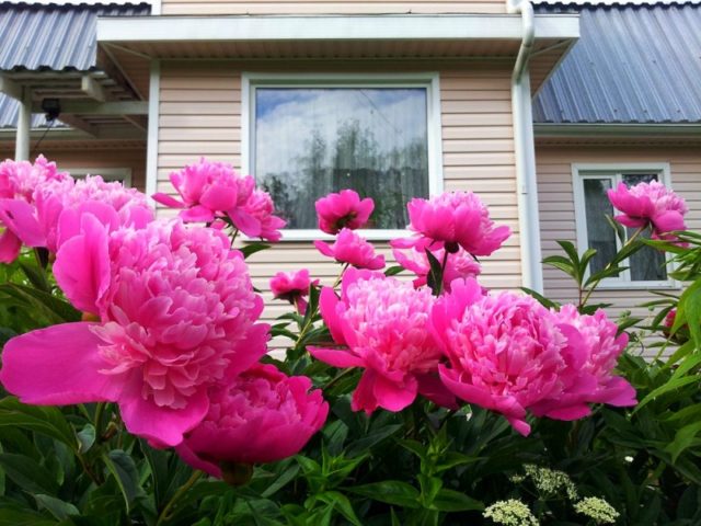 Pfingstrosen sehen unter der Hauswand wunderschön aus und sind auch windgeschützt.