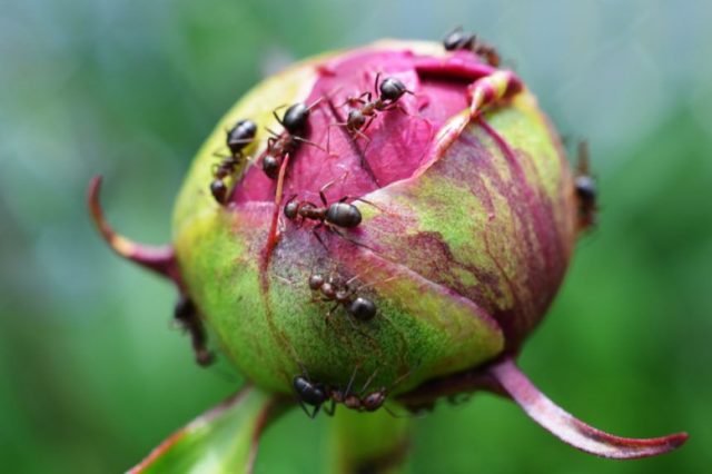 Ameisen fressen den süßen Saft der Knospen und beeinträchtigen die Blüte.