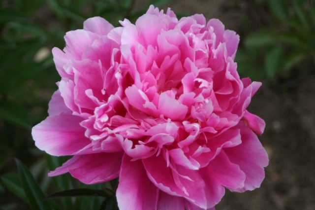 Die große Pfingstrose Pink Vanguard oder Pink Vanguard wächst bis zu 1 m über dem Boden und produziert Mitte Juni große Knospen in einem weichen Rosa. Während der Blüte wird es etwas heller und die Blütenblätter an der Basis werden rötlich. Durch die seitlichen Knospen am Stiel bleibt die Dekorativität lange erhalten, sie sinkt nicht und bricht nicht.