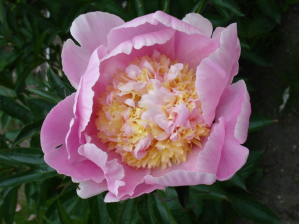Die hellrosa Pfingstrose Pink Delight zeichnet sich durch lose Knospen mit einem noch zarten Farbton aus. In der Mitte ist die Blume aufgrund der zahlreichen Staubblätter goldgelb. In der Höhe überschreitet die Art in der Regel nicht 70 cm, beginnt ab den ersten Junitagen reichlich zu blühen.