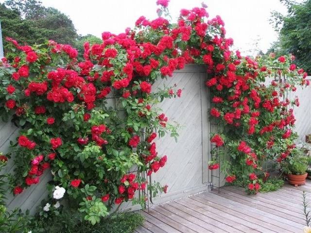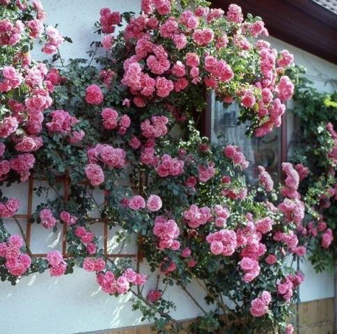 Normalerweise werden auf diese Weise kleinblumige Kletterrosen gebildet, aber großblumige Sorten, die sich entlang der Wand, Hecken oder Gitter bilden, sehen spektakulär aus.
