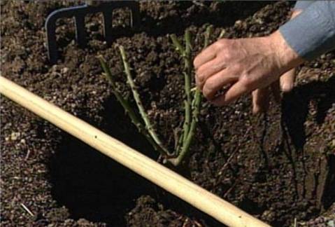 Es kommt vor, dass gekaufte Kletterrosen mit einer bloßen Wurzel nicht sofort gepflanzt werden können, sondern irgendwie gerettet werden müssen. Graben Sie dazu ein V-förmiges Loch und legen Sie beschriftete Pflanzen entlang einer Seite aus. Die Vertiefung ist mit Erde bedeckt, sie ist leicht verdichtet.
