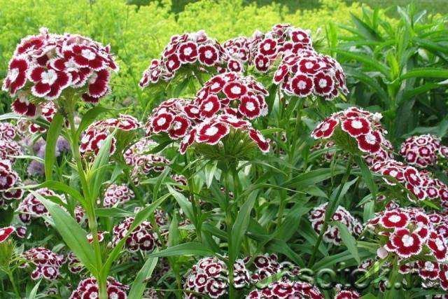 Die türkische Nelke ist eine unprätentiöse Pflanze, die keine strengen Bedingungen für Wachstum und reichliche Blüte erfordert. Diese Blumen sehen perfekt aus in einem Blumenbeet, in einem Garten, in einem Blumengarten in Kombination mit anderen Gartenblumen, auf einem Balkon, in Behältern und Blumentöpfen.