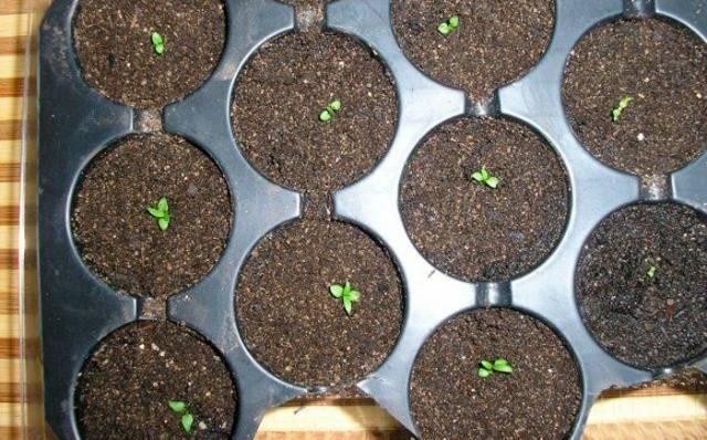 Nachdem die ersten jungen Triebe erscheinen, bringen Sie die Behälter mit Blumen an einen beleuchteten Ort.