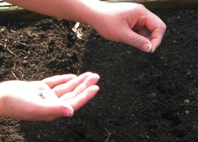 - Verteilen Sie die Samen der Pflanze gleichmäßig in ihnen, ohne sie zu vertiefen.