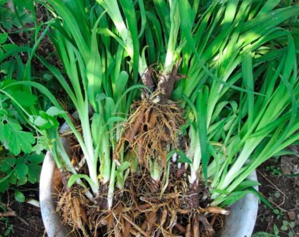 - In dem vorbereiteten Bereich bilden sich in einem Abstand von mindestens 40-60 cm mehrere flache Löcher (die Rhizome sollten frei darin platziert werden).