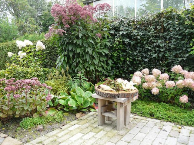 Das Splintholz kann mit verschiedenen Pflanzen kombiniert werden. Wenn Sie Harmonie in der Farbe benötigen, sollten Sie japanische Anemone, Astilbe, Highlander, Delphinium, Loosestrife, Traubensilberkerze (Cimicifuga), New England Astern, lila Echinacea wählen.