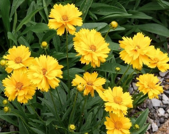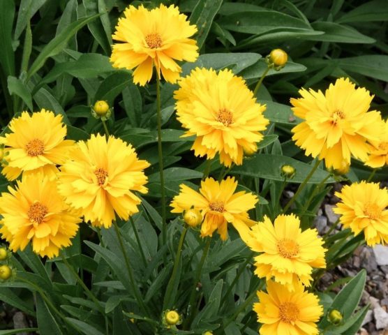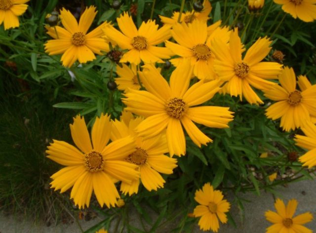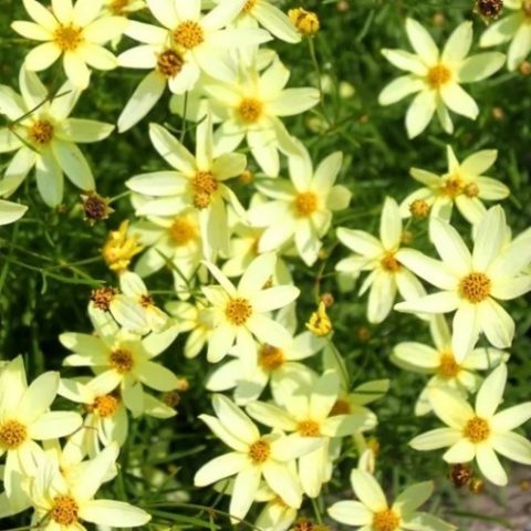 Lanceolate (Lanceolata) ist eine weitere amerikanische Art der Coreopsis. Der Busch ist mittelgroß, die Triebe verzweigen sich gut und erreichen eine Höhe von 50-60 cm. Die Blätter sind einfach, die Blüten haben einen Durchmesser von bis zu 6 cm und sind gelb. Blüht hauptsächlich in der zweiten Sommerhälfte, 8 Wochen hintereinander.