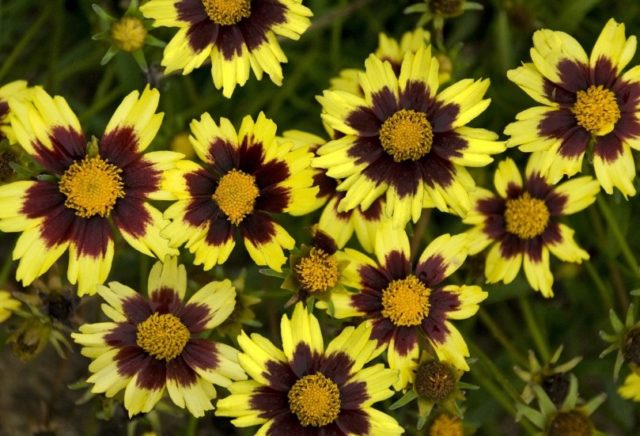 Dies ist eine verkümmerte Art der mehrjährigen Coreopsis, Zweige wachsen bis zu 20-30 cm. Die Blüten sind zitronengelb.