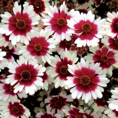 Mehrjährige Coreopsis-Blütenblätter sind in verschiedenen Farben bemalt: