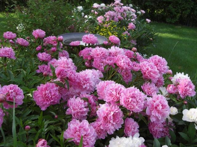 Mittelgroße Stauden werden in Gruppen oder einzeln gepflanzt, wenn es erforderlich ist, sich auf das Pflanzen zu konzentrieren. Mittelgroße blühende Stauden oder solche mit dekorativem Laub können verwendet werden, um das persönliche Grundstück in Zonen zu unterteilen, Ruheplätze zu dekorieren oder mehrstöckige Blumenbeete zu schaffen.