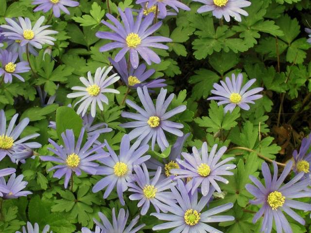 - Nur an den Südhängen sind Kronenpflanzungen, kaukasische, zarte Apenninanemonen angeordnet. In der mittleren Spur haben sie einfach nicht genug Licht.