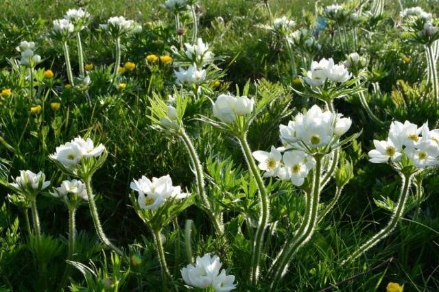 Anemonen mit doldenförmigen Blütenständen, kurzen Rhizomen, dick und gerade, stellen die folgende Gruppe dar, deren Vegetationsperiode sich über die gesamte Saison erstreckt:
