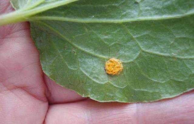 Aufgrund der Aktivität des Pilzes Aecidium clematidis DC im Frühjahr kann man an den Trieben und Blättern von Clematis manchmal kleine orangefarbene Schwellungsflecken in Form von Pads beobachten, die aus einer Pulvermasse bestehen. Dies sind Sporen eines Pilzes, eines Erregers von Rost, einer Krankheit, die zum Absterben der Blätter und zur Verformung der Triebe führen kann.