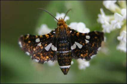 Ein Schmetterling aus der Familie der Motten mit bläulich-grünen Flügeln beginnt im Juni zu fliegen und ernährt sich den ganzen Sommer über, auch von Clematis-Pflanzungen. Hellgrüne Raupen mit dunklem Rücken werden im Hochsommer besonders aktiv. Zwischen den Blättern befinden sich grüne Puppen.