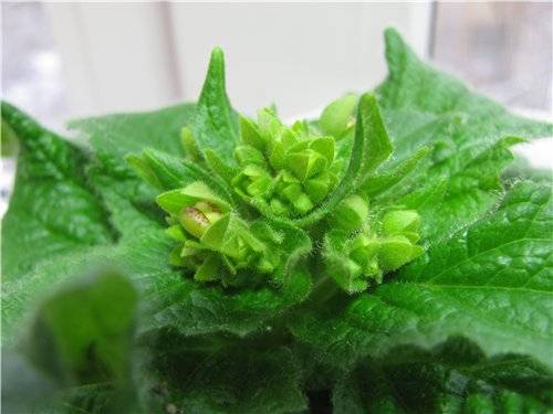 Noch vor der Knospenbildung können sich zwischen den Blättern der Calceolaria - Stiefkinder - kleine zusätzliche Sprossen bilden. Es wird empfohlen, sie zu entfernen, da nach diesem Vorgang die Knospen größer werden und die Blüten größer werden.