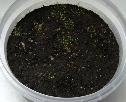 Es ist ratsam, gewöhnlichen Sämlingsböden in einem Verhältnis von acht zu eins feines Vermiculit zuzusetzen. Vor der Aussaat muss die Bodenoberfläche angefeuchtet und vorzugsweise mit feinem kalziniertem Sand bestreut werden.