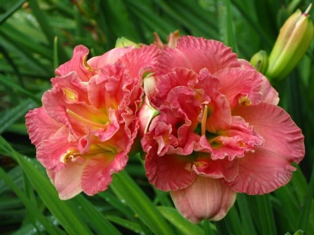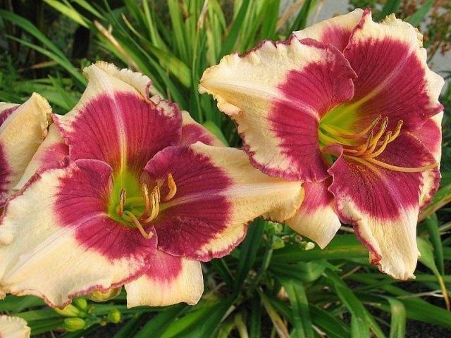 Taglilien können zu dekorativen Zwecken sowohl in Einzelpflanzungen als auch in Kombination mit anderen Pflanzen gezüchtet werden. Tetraploide Sorten sehen auf Blumenbeeten und Blumenbeeten sehr luxuriös aus. Taglilienbüsche wachsen schnell, Blüten sind viel größer als die traditioneller Pflanzen und unterscheiden sich in einer Vielzahl von Farben.