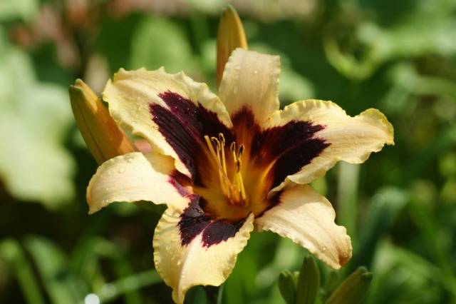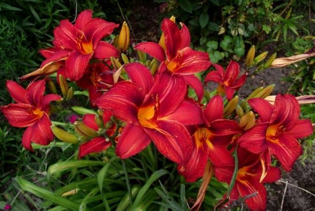 Bei starkem Feuchtigkeitsmangel werfen Taglilien ihre Knospen ab, das Laub verliert seine leuchtende Farbe. Daher ist es wünschenswert, dass der Boden im Blumengarten immer feucht ist. Wenn es im Sommer nicht regnet, müssen Sie die Pflanzen so oft wie möglich gießen.
