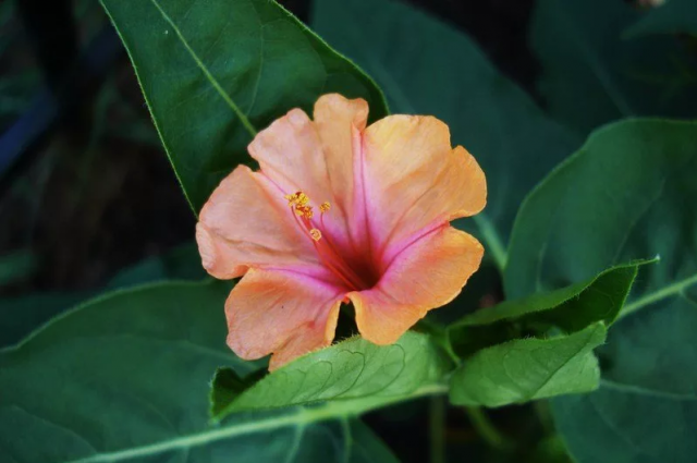 Mirabilis-Blüten blühen nach 16 Uhr und schließen erst im Morgengrauen. Bei bewölktem Wetter blühen die Knospen tagsüber. Die Pflanze verströmt ein zartes angenehmes Aroma.