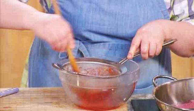 Reiben Sie es mit einem Holzlöffel durch ein Sieb.