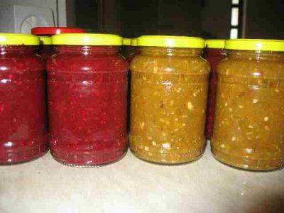 Tkemali für den Winter muss noch 5-7 Minuten gekocht werden. Es wird in einen sterilen Behälter gegossen und hermetisch verschlossen.