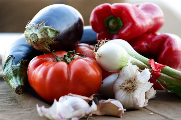 - Paprika und Tomaten werden mit kochendem Wasser übergossen und von ihnen geschält. Bei Tomaten wird die harte Stelle der Befestigung des Stiels entfernt, bei Paprika wird die Samenkammer von Körnern gereinigt. Gemüse wird gemahlen und an die Gesamtmasse der Produkte gesendet. Zu diesem Zeitpunkt können Sie anstelle von Tomaten dem Kaviar Tomatenmark hinzufügen.
