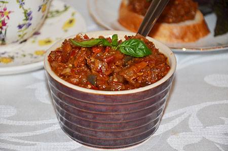 Trotz der einfachen Zubereitung und einer begrenzten Produktpalette hat nach diesem Rezept zubereiteter Auberginenkaviar einen hervorragenden Geschmack. Selbst der unerfahrenste Koch kann es kochen.