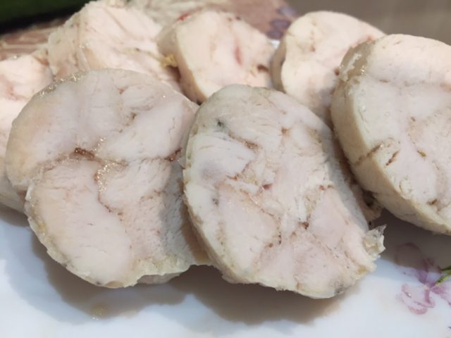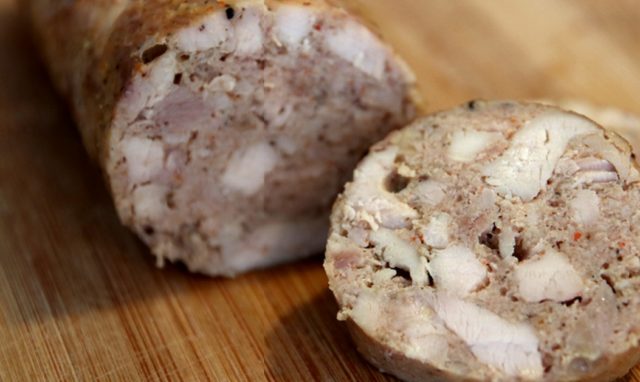 Hähnchenbrustwurst mit Gelatine und Knoblauch