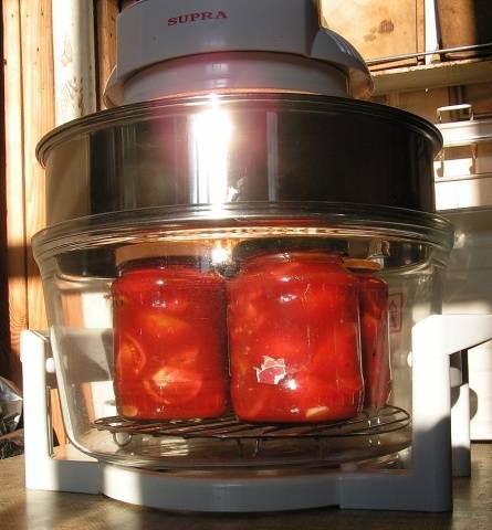Notwendigerweise heißer Lecho wird in sterilen Gläsern ausgelegt und mit sterilen Deckeln verschlossen. Es ist ratsam, die Gläser sofort umzudrehen und mit einem dicken Handtuch abzudecken, bis sie vollständig abgekühlt sind.