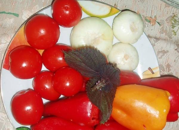 Am einfachsten und schnellsten Lecho kochen gemäß dem Rezept unten, wenn mit der Zwiebel keine zusätzlichen Aktionen ausgeführt werden, außer zum Schneiden.