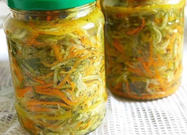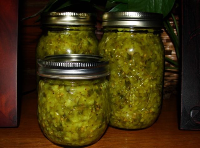Auch ohne Sterilisation wird sich das Gericht als sehr lecker und zart herausstellen, da darin geriebene Gurken verwendet wurden. Es ist besser, die Konservierung auf dem Balkon oder der Loggia aufzubewahren.