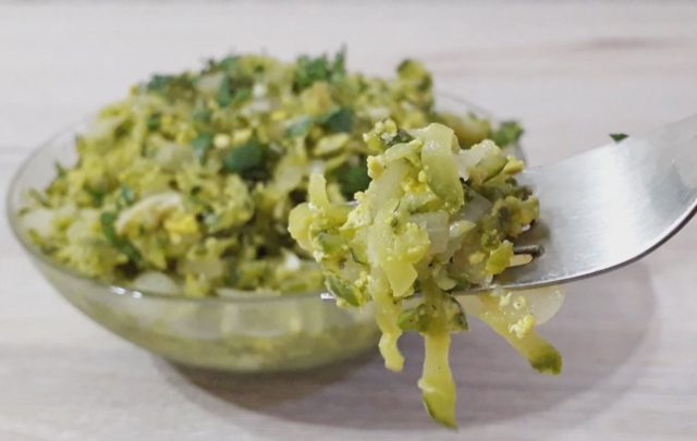 Sie müssen geriebenem Gemüse nicht viel Gewürze hinzufügen, da sonst der Geschmack nachlässt. Es reicht aus, ein wenig Knoblauch und, falls gewünscht, Pfeffer zu verwenden.
