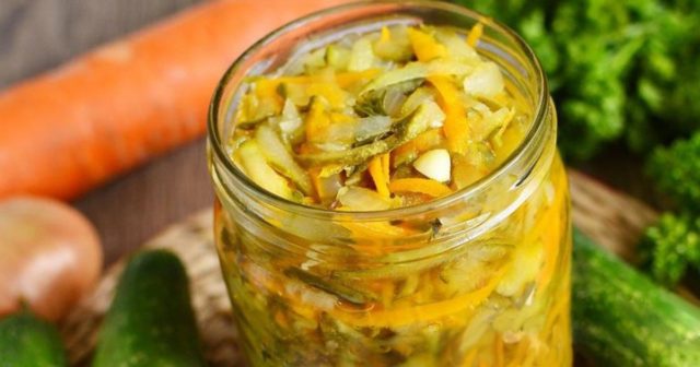 Für den Winter aus überreifen Gurken mit Karotten und Knoblauch einlegen