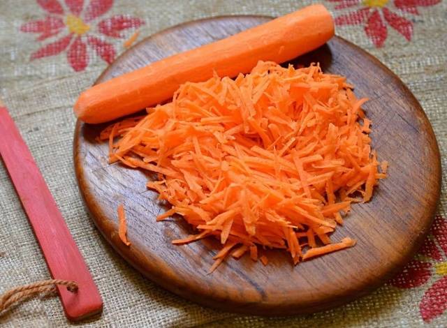 - Karotten werden gründlich gewaschen, geschält und auf einer feinen Reibe gehackt.
