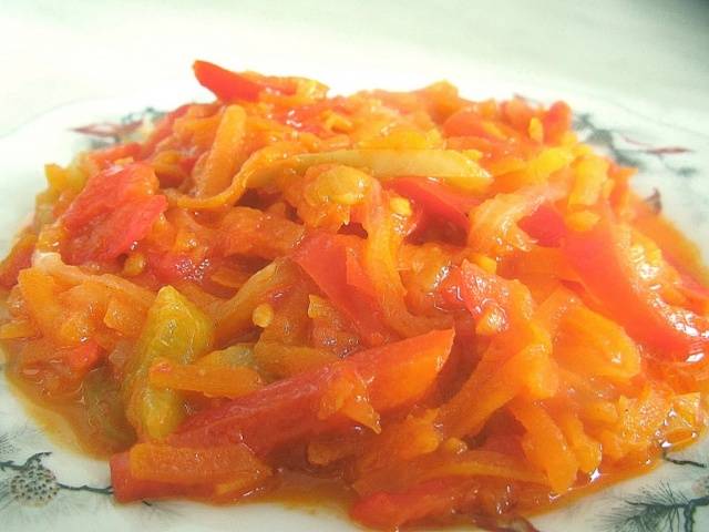 Das Rezept kommt der klassischen Version nahe. Kann gemacht werden Lecho für den Winterein Stück Sommer im Glas zu halten.