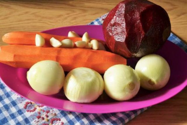 - Nach einer Weile wird ein Wurzelgemüse in die Gemüsemasse eingeführt und eine halbe Stunde bei schwacher Hitze gekocht.