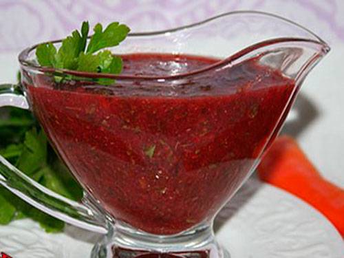 - Anstelle von wilden Pflaumen werden in Tkemali Stachelbeeren verwendet. Es hat gerade genug Säure. Wählen Sie saure, unreife Beeren für die Sauce, um den Geschmack des ursprünglichen Tkemali zu erhalten.