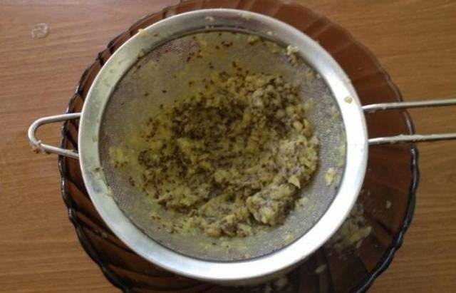 Schritt vier. Wischen Sie die gekochten Stachelbeeren durch ein Sieb, um die Samen zu trennen.