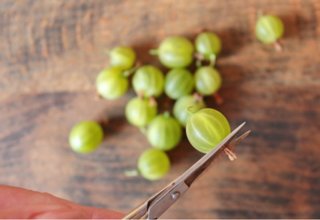 Schritt eins. Waschen Sie die Beeren und schneiden Sie die Schwänze und Stiele von jedem ab. Dies ist bequem mit einer Schere zu tun.