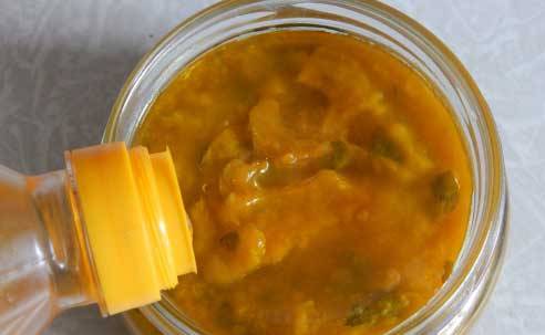 Die Sauce ist jetzt fertig. Wir gießen es in Gläser und stellen es in den Kühlschrank oder Keller.