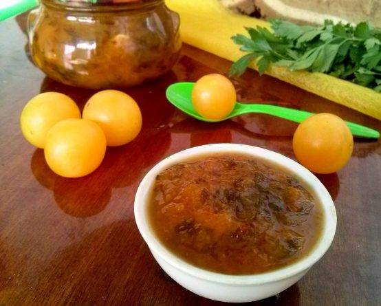 Die georgische Sauce aus gelben Kirschpflaumen ist von Natur aus für Fleischgerichte gedacht. Es zeichnet sich durch seine Schärfe und Würze aus. Nehmen Sie sich Zeit, um eine große Portion zu machen. Kochen Sie zuerst mit der Mindestmenge an Essen. Wenn Sie alles mögen, machen Sie so viel Sauce für den Winter, wie Sie für Ihre Familie brauchen.