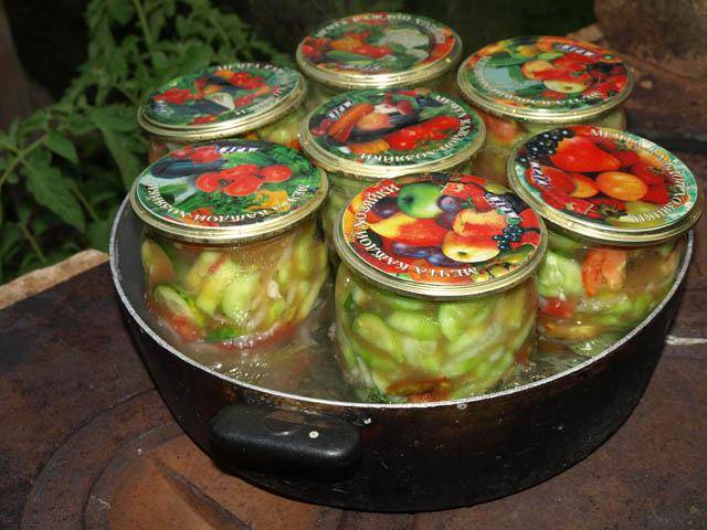 Sie können nicht nur leere, sondern auch gefüllte Dosen sterilisieren. Diese Methode wird häufig beim Einmachen von Gemüsesalaten, Lecho, Adjika und einigen anderen Produkten, die durch Kochen zubereitet werden, in kleinen Dosen angewendet.