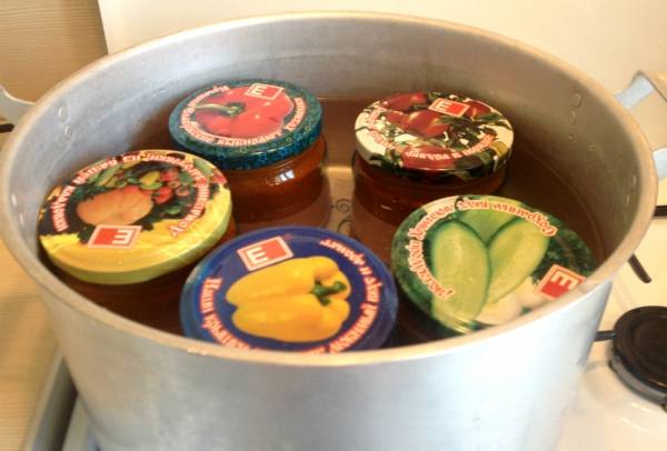 Bei der Pasteurisierung werden Behälter und Produkte darin verarbeitet, indem sie auf 99 ° C erhitzt werden0C. Hohe Temperaturen und mangelndes Kochen ermöglichen es Ihnen, schädliche Bakterien zu zerstören und Vitamine in Winterpräparaten teilweise zu konservieren. Sie können Gläser in einem Topf auf dem Herd oder im Ofen pasteurisieren. In diesem Fall muss die Pasteurisierungszeit im Vergleich zur herkömmlichen Sterilisation verdoppelt und die Temperatur auf 86-99 gesenkt werden0VON.