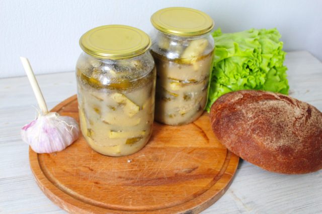 - Gießen Sie die Marinade in Gläser und sterilisieren Sie sie 10 Minuten lang. Schrauben Sie die Deckel wieder auf und lassen Sie sie 48 Stunden lang verkehrt herum einwickeln.