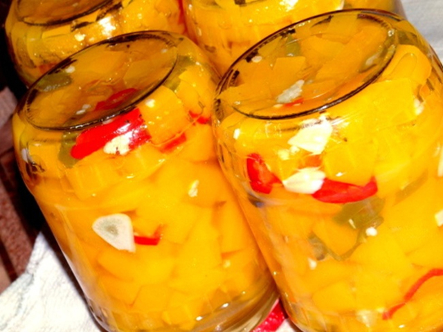 Eingelegter Kürbis für den Winter ist eine Zubereitung, die sich in Geschmack und Zusammensetzung der Zutaten sehr unterscheidet. Aber es ist sehr lecker in süßer, salziger und würziger Form.
